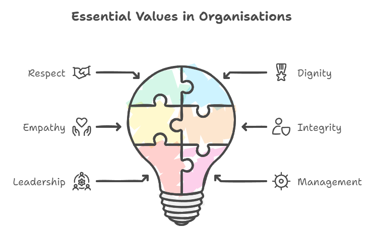When organisational values align with leadership and management efforts, service users receive consistent and compassionate care. Staff members feel empowered to deliver high-quality services that reflect respect, dignity, and empathy.